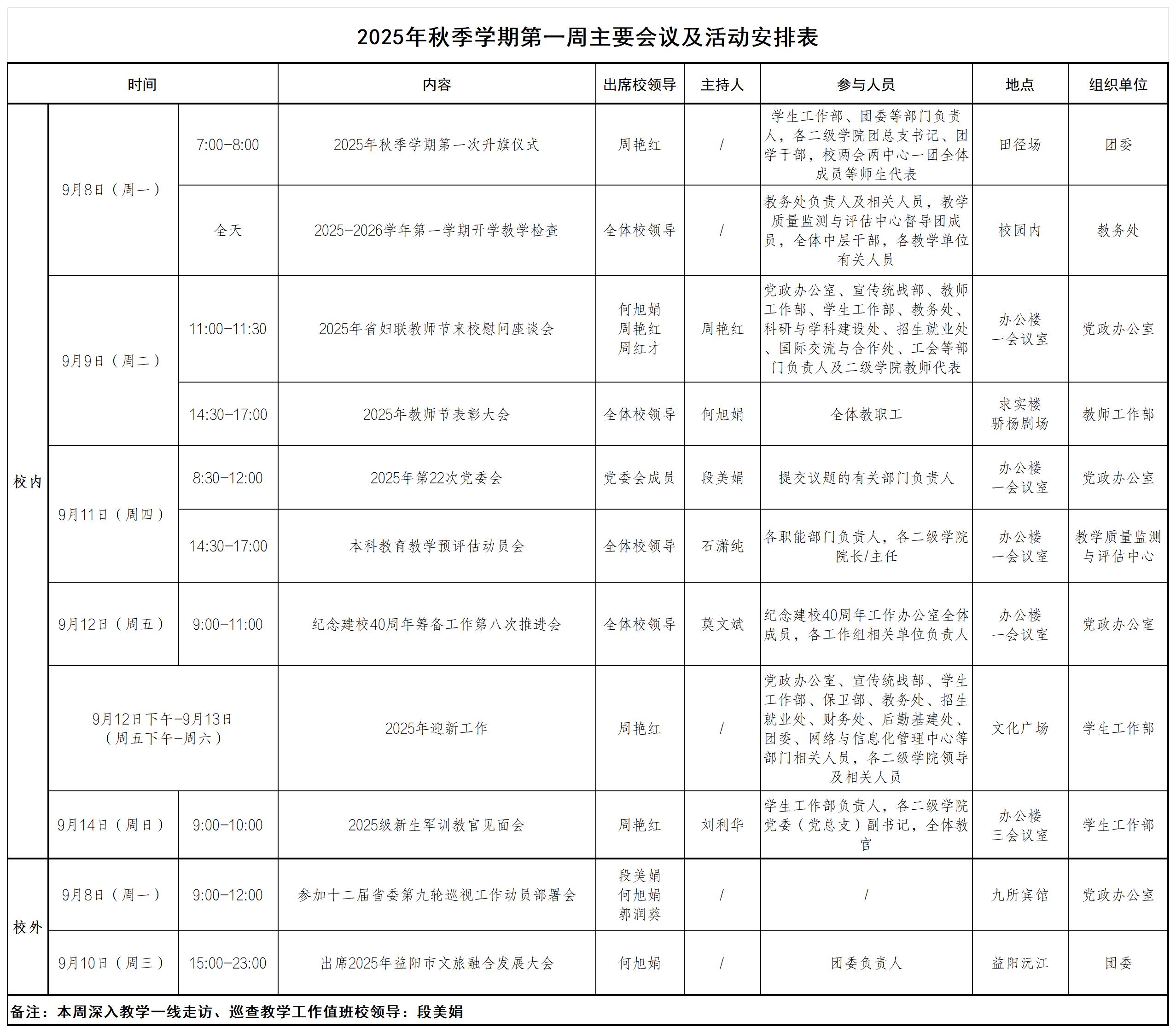 2025年秋季学期第一周主要会议及活动安排