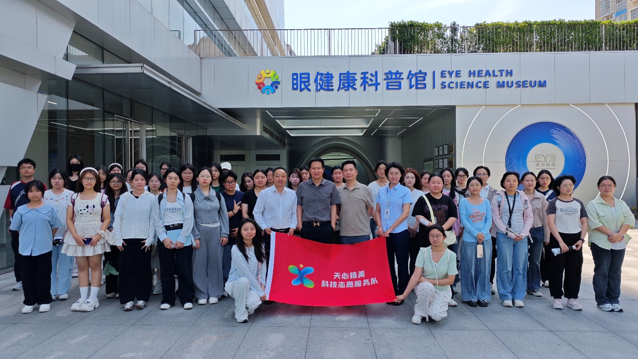 九三学社pg娱乐电子游戏官网入口支社利用自身专业优势,在“天心·臻美”科技志愿者团队下组建了禾下传承宣传团分队、科农兴梦分队、AI分队、科教先锋分队、智伴夕阳AI小分队6支志愿者队伍。为更好的打造“天心·臻美” 科技志愿者品牌,做好志愿服务,促进团队合作交流,形成工作合力;5月13日下午,九三学社pg娱乐电子游戏官网入口支社副主委李发军、支社委员李雨樽带领“科教先锋分队”50名志愿者赴爱尔眼科眼健康博物馆进行交流培训活动。