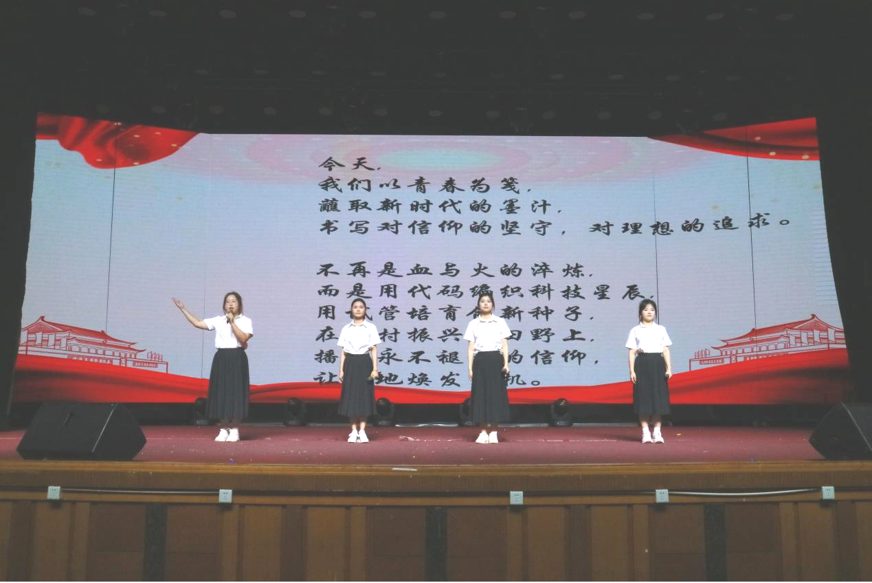 活动在充满青春活力的《天地龙鳞》唱跳表演中拉开序幕,大学生党员们沿着“沉浸式”诵读这条主线,化身革命先烈的“信使”,通过朗诵、情景剧、舞台剧等形式,演绎了江竹筠、赵一曼、夏明翰等革命先辈们的红色家书,弘扬了先辈们清正廉洁、修身齐家的崇高精神。观众席上的大学生党员们深受感动,深刻体会到了先辈们为了国家和人民,不惜牺牲一切的伟大情怀。活动结束后,23学前教育1班的陈嘉琪谈到:“同学们的演绎让我深受感动,内心久久不能平息。先烈们在艰苦的环境中都能廉洁奉公、冲锋在前,我们生活在和平年代,更应该传承和发扬这种精神,以‘功成不必在我,功成必定有我’的信念,在学习和生活中发挥先锋模范作用。”