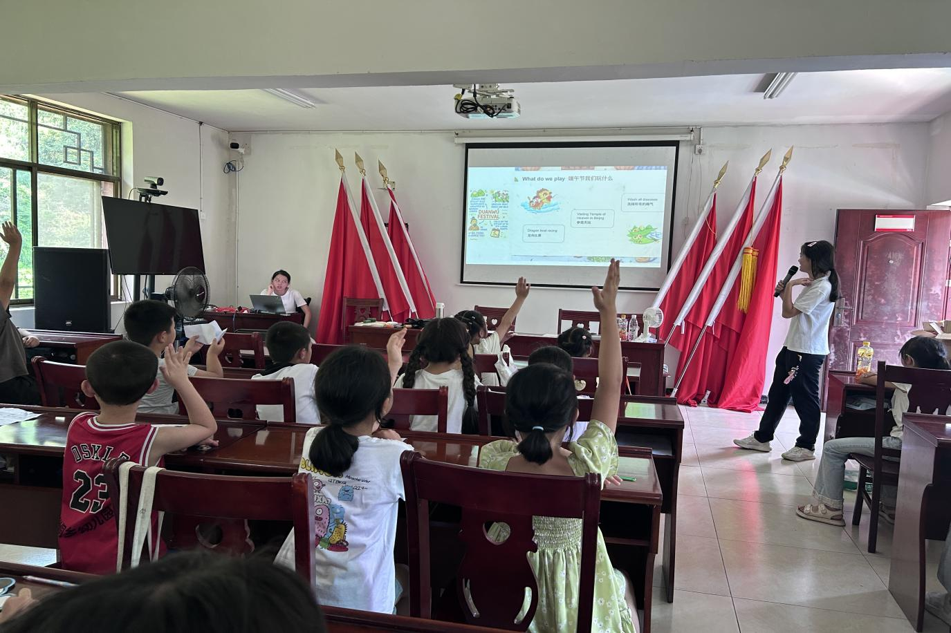 本网讯(文学与传播学院 王业聪 张紫蕊)7月6日,pg娱乐“数智侗才创孵工坊”团队在湖南省怀化市皇都侗族文化村的实践活动进入第四天。团队坚持“趣味支教+文化融合”的模式,在深化英语教学的同时,着力挖掘侗族文化丰富内涵。