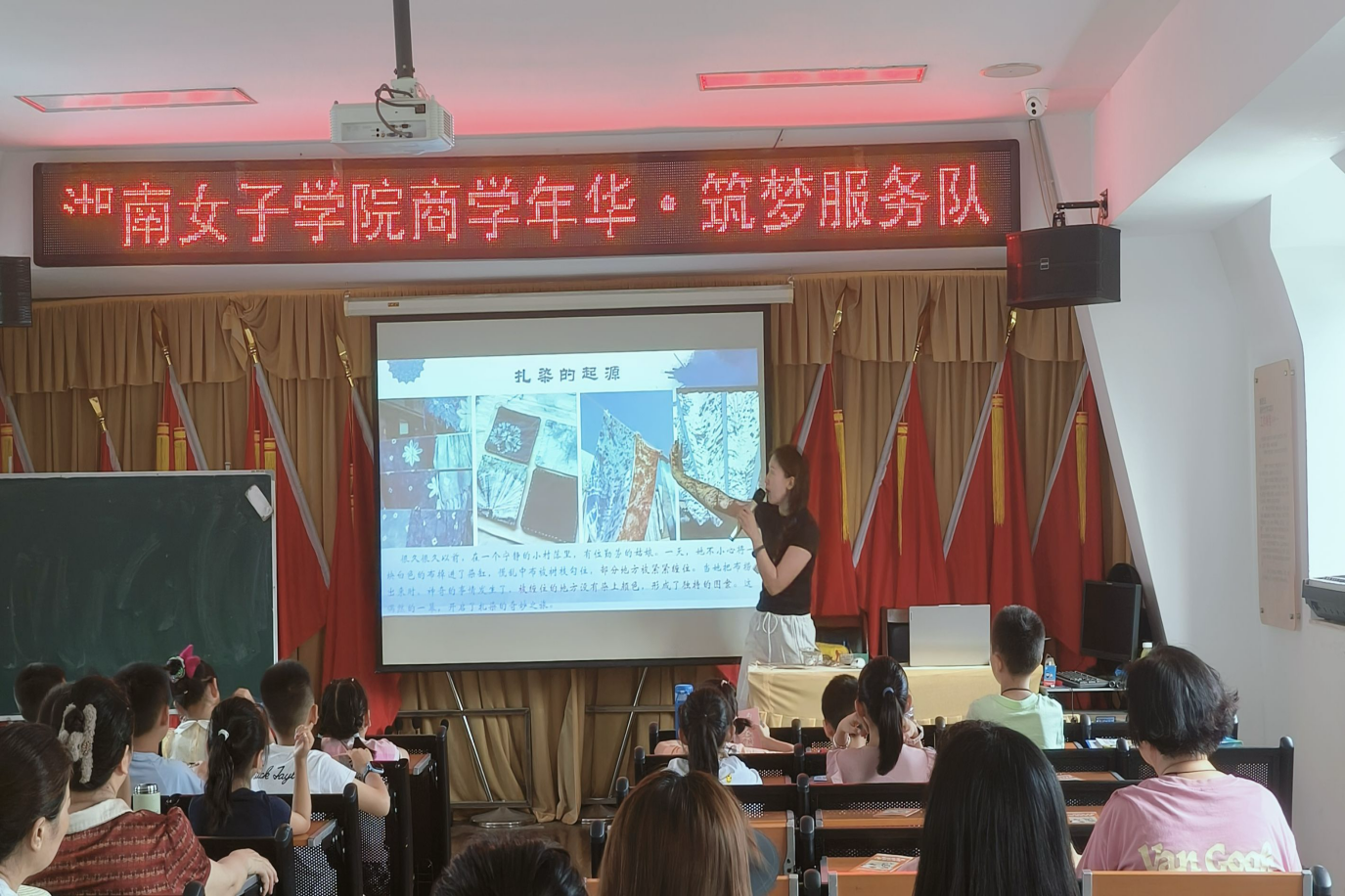 本网讯(商学院 孟书宇 田甜)7月9日,pg娱乐“三下乡”社会实践团队——商学年华·筑梦服务队走进康园社区,成功举办了主题为“青出于蓝”非遗扎染环保袋体验活动。本次活动共吸引了30余位社区小朋友热情参与,使得孩子们体会到非遗文化的独有魅力。