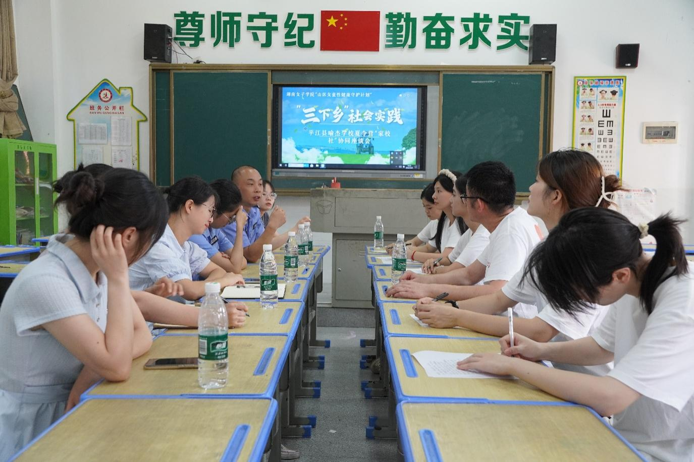 本网讯(马克思主义学院 邓灿辉 文文 张永钰)7月24日,一场别样的“三下乡”社会实践座谈会在平江县加义镇丽江村喻杰小学教室里举行,。“利剑护蕾”行动团队、平江县、加义镇及丽江村各级领导出席会议,共商山区女童性健康“家校社”协同守护机制的构建。