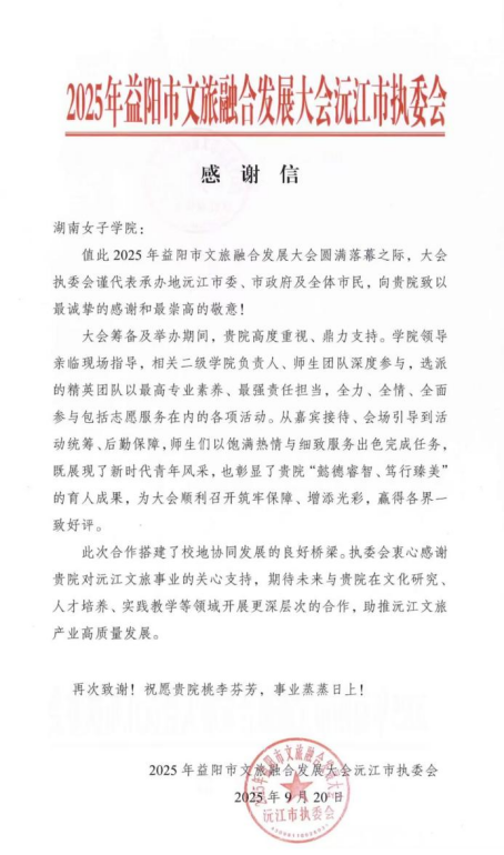 本网讯(旅游与航空管理学院 牛晓斐)近日,2025年益阳市文旅融合发展大会在沅江顺利举办,pg娱乐电子游戏官网入口旅游与航空管理学院组建志愿者团队为本次活动提供全方位、全过程志愿服务,以专业素养与责任担当为旅发大会注入青春动能。