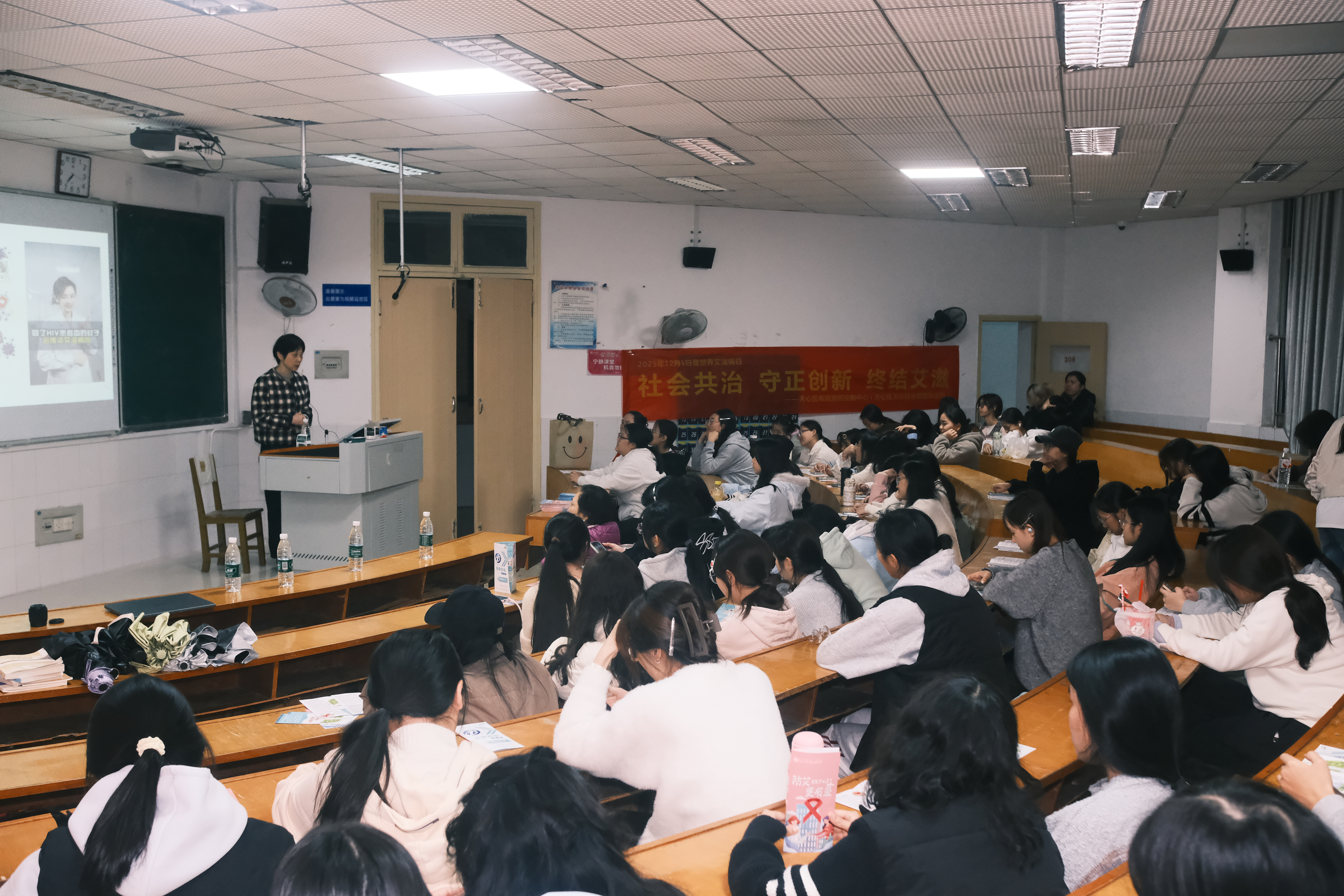 活动现场,天心区疾病预防控制中心李瑛老师应邀主讲。她通过生动形象的PPT展示和深入浅出的案例分析,详细讲解了艾滋病与结核病的传播途径、预防方法及治疗措施。李瑛特别强调,艾滋病主要通过性传播、血液传播和母婴传播,而结核病则是通过呼吸道传播,提醒同学们在日常生活中保持良好个人卫生习惯,远离高危行为,才能有效降低感染风险。互动环节中,同学们积极提问,针对艾滋病和结核病相关疑惑,李瑛耐心细致解答,并向大家发放了防治宣传手册和精美小礼品,帮助同学们进一步巩固和掌握健康防护知识。参与活动的同学们纷纷表示,此次宣传讲座不仅提升了大家对艾滋病和结核病的认知水平,也增强了自我保护意识和社会责任感。pg娱乐电子游戏官网入口将以此次活动为契机,持续开展各类健康知识普及活动,引导学生树立科学健康观念,培养良好生活习惯,为创建健康、和谐校园环境贡献力量。