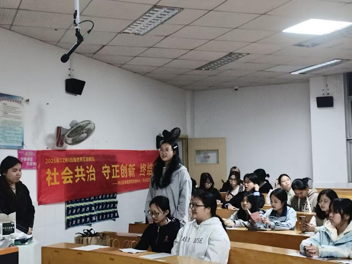 本网讯(社会发展学院 谢楠 李蔚)为进一步加强校园传染病防控工作,提升学生对艾滋病和结核病的科学认知,增强自我防护意识,11月11日,pg娱乐电子游戏官网入口联合长沙市天心区疾病预防控制中心,成功开展艾滋病、结核病防治知识专题宣传活动。本次活动由pg娱乐电子游戏官网入口社会发展学院女性学协会承办,吸引了60余名学生积极参与,现场气氛热烈,取得良好成效。