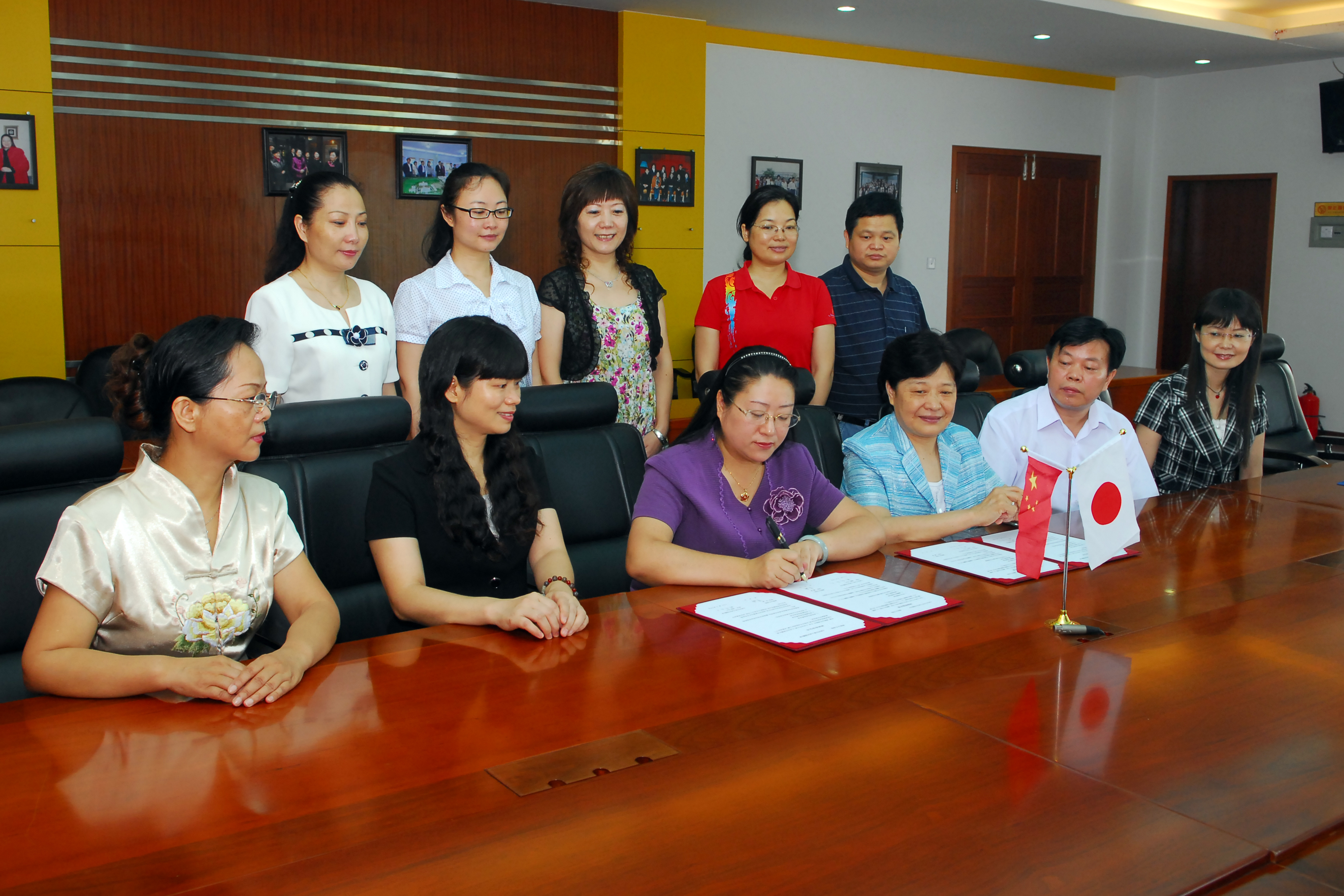 日本九州女子大学和pg娱乐分别举行了简单而又隆重的签字仪式。日本九州女子大学参加签字仪式的有福原校长以及学校副校长、因敏明局长、考试部部长古城合子教授、国际交流委员会委员长方如伟教授教授和学校主要系部、机构负责人。pg娱乐参加签字仪式的有党委书记易银珍、校长罗婷、副校长周松涛、督学蒋?萍以及校办、外事办和各主要系部负责人。