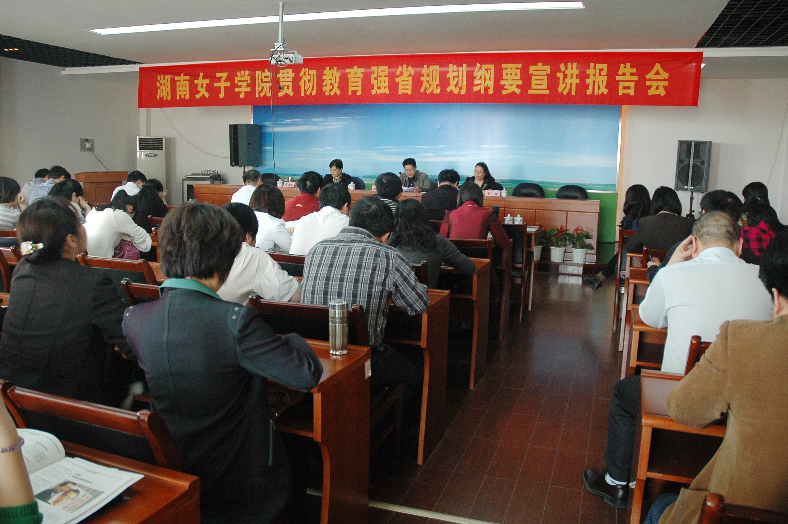 4月22日下午,pg娱乐在办公楼三楼会议室举行了学习贯彻全省教育工作会议和建设教育强省规划纲要宣讲报告会。省教育厅副巡视员陈飞跃作专题报告,pg娱乐全体校领导、中层干部、正高职称教师、教研室主任等参加报告会。报告会由校党委书记易银珍主持。 省教育厅副巡视员陈飞跃详细解读了《国家中长期教育改革和发展规划纲要》和《湖南省建设教育强省规划纲要》两个规划纲要的出台背景、主要特点、基本精神、战略重点、发展任务、体制改革及保障措施等重要方面。在对《国家中长期教育改革和发展规划纲要》进行解读时,陈飞跃就《纲要》中提到的义务教育年限、高等教育的毛入学率、农民工子女就近入学、考试招生制度改革和教育保障机制等热点问题作了详细分析。在谈到《湖南省建设教育强省规划纲要》时,陈飞跃对《纲要》提出的六大战略要点进行了重点分析,即加快普及学前教育,推进义务教育均衡发展,增强职业教育服务能力,提升高等教育质量与创新水平,提高教师队伍整体素质,加快推进教育信息化,从而使湖南省实现由教育大省向教育强省、人口大省向人力资源强省的转变,这也是《湖南省建设教育强省规划纲要》制定出台的主要关注点。