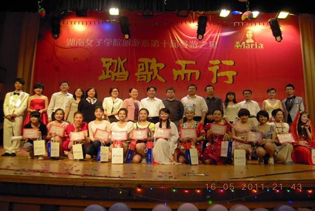 此次大赛预赛从三月底开始,旅游管理系同学踊跃参加,精心准备,经过专业的指导和培训,一路过关斩将,历时一个多月,最终十二名选手进入决赛。湖南师范大学、中南大学、民政职业技术学院等兄弟院校也应邀参加此次晚会。此次大赛极大地促进了旅游管理系学生的专业学习热情,提高了学生的专业实践能力,锻炼了学生干部的活动组织能力,受到了领导的一致好评和广大学生的普遍欢迎。(旅游管理系 向前)