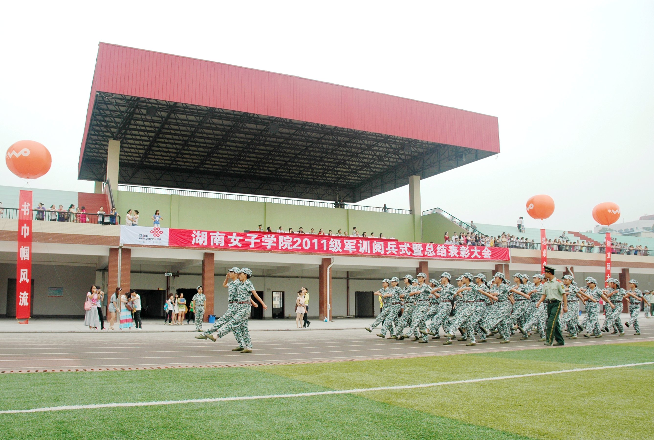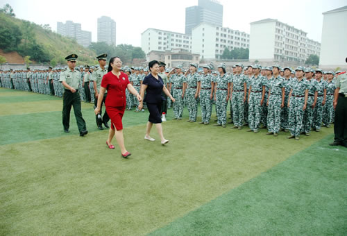 9月16日上午,pg娱乐2900余名新生身着整齐的迷彩军训服,精神抖擞地齐聚田径场,参加2011级新生军训阅兵式暨总结表彰大会。校党委书记易银珍,校长罗婷,校党委副书记吴洛夫,副校长李军波、黄立宏、贺江平、周美林,副校级督导员蒋?萍,工会主席莫文斌,校长助理成荷萍等领导及宣传统战部部长李?、教务处处长王凤华、各系党总支负责人、省武警总队直属支队代表等参加了此次阅兵式暨表彰总结大会。大会由党委副书记吴洛夫主持。 阅兵式在雄壮的国歌声中拉开帷幕。在军训团团长的陪同下,易银珍书记、罗婷校长检阅了军训方阵,并向军训队员们致以亲切的问候:“同学好!” “同学们辛苦了!”军训队员们整齐嘹亮地高呼:“首长好!”“为女大争光!”威武雄浑的口号声响彻云霄。