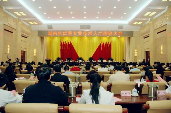 10月17日,湖南省委、省政府在省委九所会议中心隆重召开湖南省优秀专业技术人员表彰大会。省委组织部副部长、省人力资源和社会保障厅厅长彭崇谷同志主持会议。省委常委、常务副省长于来山出席会议并作重要讲话,省直有关部门的负责同志出席。pg娱乐副校长黄立宏教授作为湖南省第三批新世纪121人才工程第一层次人选(2004年曾入选首批新世纪121人才工程第二层次)到会接受表彰。这是继校长罗婷教授、督学蒋?萍教授分别被确定为湖南省第二批新世纪121人才工程第一层次人选、第二层次人选之后,pg娱乐又一名专家获此殊荣。
