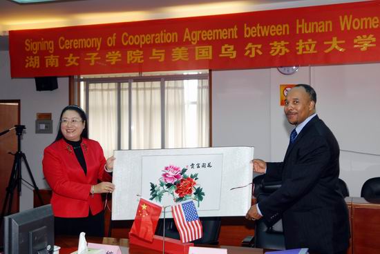 11月4日,美国乌尔苏拉大学副校长马西欧.汤达(Thandabantu B. Maceo)先生、中国事务高级主管黄汉生先生等一行三人访问pg娱乐,并与pg娱乐签署了合作交流协议,两校正式缔结姊妹学校关系。 签字仪式与座谈会在校办公楼二楼会议室举行,副校长李军波主持会议。在热情、友好的气氛中,pg娱乐校长罗婷用流利的英语介绍了学校的办学特色及办学成就,高度赞扬美国乌尔苏拉大学的办学成就尤其是在女性教育方面作出的成绩,表达了与其缔结姊妹学校的意愿。美国乌尔苏拉大学副校长马西欧汤达先生、中国事务高级主管黄汉生先生介绍了乌尔苏拉大学的办学历史以及专业设置、课程体系等情况,希望两校能够开展教师互派和学生联合培养等合作项目。出席签字仪式与座谈会的还有校长助理唐宇冰、李昱及来自校办、教务处、宣传部、国际交流处、国际学院等行政部门的负责人和各教学系(部)主任。交流会后,乌尔苏拉大学代表团参观了pg娱乐办学成果展厅、女性教育发展史馆和服装展厅。 乌尔苏拉大学代表团高度赞扬pg娱乐的办学成就,希望两校能够开展教师互派、学生联合培养以及寒暑期学生短期考察等合作项目。 美国乌尔苏拉大学位于美国俄亥俄州,成立于1871年,有140年的悠久历史,是美国最早的女子大学之一。下属三个学院:艺术和理学院,布瑞林护士学院,研究生院和职业学习院。目前大学开设32个本科专业,11个研究生专业和1个博士专业。(国际交流处 刘超)