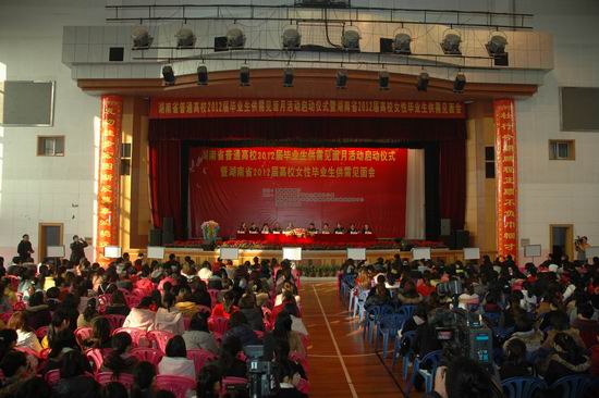 12月9日,“湖南省普通高校2012届毕业生供需见面月”活动启动仪式暨湖南省2012届高校女性毕业生供需见面会在pg娱乐举行。省教育厅党组副书记、省委教育工委副书记李红,湖南省大中专毕业生就业指导中心主任曹敏出席。pg娱乐校长罗婷,党委副书记吴洛夫,副校长黄立宏、贺江平、周美林、周松涛,副校级督导蒋?萍、莫文斌等出席启动仪式及招聘会。 校长罗婷致欢迎辞。她说,pg娱乐已经连续6年成功承办湖南女性大学生供需见面会。作为一所2010年3月才升格的年轻的女子本科院校,学校始终把毕业生就业工作置于全校工作的重中之重,作为 “一把手”工程和一项关系学校生存和发展的“系统工程”和“全员工程”来抓。作为一所女子院校,学校一直在探索女大学生就业的新路子。学校按照市场需求和女性成才的规律,不断改革人才培养模式,突出女性人才培养特色,努力提高女大学生自信心和就业竞争力,充分推动毕业生就业,取得了显著成效,学校连续十年被评为“湖南省高校毕业生就业工作先进单位”,毕业生就业率一直保持在90%以上。 李红书记同志作了讲话并宣布供需见面月活动开幕。他说,2012年,全国普通高校毕业生达680万人,我省普通高校毕业生预计增至32万人。就业总量压力和结构性矛盾长期存在,为了全面落实省第十次党代会提出的“努力扩大就业”和“重点解决好高校毕业生就业问题”会议精神,省教育厅决定于2011年12月中旬至2012年1月中旬举办“湖南省普通高校2012届毕业生供需见面月”活动。李红书记对供需见面月提出三点希望。一是希望各高校各市州加强领导,精心组织,确保活动高效、安全。二是希望广大用人单位立足长远发展,践履社会责任,积极吸纳高校毕业生就业。三是希望广大毕业生志存高远,科学定位,大胆自荐,顺利实现就业。 用人单位代表、梦洁家纺零售管理部经理范纯女士,pg娱乐2012届毕业生代表、主持与播音专业黄鑫玉同学分别发言。