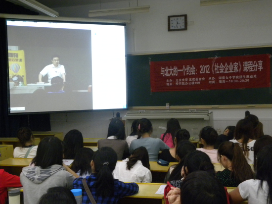 近期,友成基金会“创业咖啡”项目与北京大学经济学院合作开设的“社会企业家培育与创业的理论与实践”网络同步直播课程圆满结课。今年9月份以来,pg娱乐招生就业处通过网络平台组织了此课程的分享,共有200多名学生与北大学生同步共享了本次优质的社会企业创业启蒙课程。 今年5月初,pg娱乐选派青年教师周红金参加了在北京大学举办的“社会创业教育教师高级培训班”,随后和友成基金达成协议,启动了青年创业启蒙教育项目。湖南大学也加盟了该项目。该课程为北京大学本科生全校通选课,旨在普及社会企业及创业的理念和基础知识,还与全国的高校合作开设社会创业课的远程班。该课程共30学时,覆盖全国57个远程授课点的近三千名师生,这些远程授课点包括全国18个省(自治区、直辖市)的高校、孵化器和基层学习小组,其中约30所高校将其列入校本学分课程。课程以视野、实务、案例和实训四个模块交替进行,既有理论讲解,又有案例分析,并结合实务技能进行实操演练,全方位开启智慧、拓展思维、训练技能,得到了各方的好评。除了北京大学经济学院党委书记章政和汤敏两位“重量级”主讲老师之外,2006年诺贝尔和平奖的获得者、“小额贷款之父”穆罕默德•尤努斯为同学们远程讲解了“发展中国家的社会企业经验介绍”一课;善淘网创始人周贤,乐朗乐读学习潜能开发中心创始人兰紫,残友集团副董事长及喀什残友董事长、第七届“中华慈善奖”获得者刘勇,“无障碍艺途”组织创始人苗世明等社会企业家都来到“创业咖啡”的课堂现身说法,介绍自身创业历程并与同学们交流经验;远东控股集团远东大学执行校长于海发,君合律师事务所的专业律师志愿者林海宁、张达音,和具有十几年外企工作及培训经验的培训师赵小蒙则为同学们展示了商业计划书、社会企业初创法务和沟通技巧等方面的技能。 该课程不仅丰富了pg娱乐的大学生创新创业文化教育的内容和形式,而且还推动了pg娱乐《创业学》和SYB创业培训长足有效的开展;此外,还为建立跨界合作的社会创新网络和平台以及培育出真正具有高度人文情怀和专业竞争能力的社会实践家做了很好的尝试。(招生就业处 周红金)