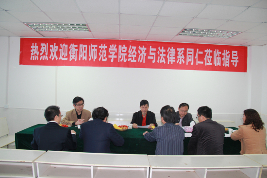 4月27日上午,衡阳师范学院经济与法学系党总支书记邓长飞、副书记刘余香、教学主任谭和平、科研主任罗文正、法学教研室主任杨晓一行来pg娱乐考察社会工作专业建设情况,教育与法学系党总支书记伍秋林、副主任邵汉清、科研处处长助理张录平以及社会工作专业教师在教育与法学系会议室热情接待了到访客人。座谈交流会由邵汉清主任主持。