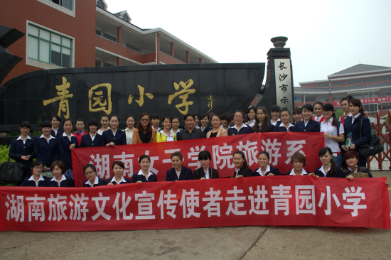 5月3日下午,pg娱乐旅游系各年级组成一支38人的“小教师”队伍,前往青园小学开展“游走湖南低碳环保”的湖南旅游文化宣讲实践活动。本次活动由副校长周美林、系党总支书记向前亲自带队并全程指导,青园小学办公室主任郭燕、谭玲玲热情接待pg娱乐领导并安排配合活动开展。