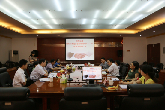 6月26日上午,湖南财政经济学院刘建民副院长率该校科研处、财务处主要负责人一行6人来pg娱乐考察交流学科建设和科研管理工作情况。座谈会在办公楼二楼会议室举行。pg娱乐副校长陈赤平教授、校长助理兼科研处处长李昱教授、科研处、财务处、相关人员参加了交流座谈。