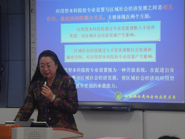 罗婷书记应邀出席本次会议,向大会提交了会议论文,并在会上作了题为“应用型本科院校专业设置与区域社会经济发展的耦合分析”的发言。罗书记认为,松散耦合是应用型本科院校专业设置与区域社会经济发展的应然关系,要达成这种关系,需要有良好的政策环境,应用型本科院校专业设置要结合自身实际,以学科建设作支撑,以社会需求为导向,主动服务区域社会经济发展,形成“学科建设支撑专业设置,专业设置满足区域社会经济发展需要,区域社会经济发展提升对专业设置的承载力,专业结构优化进一步夯实学科基础”互动共生机制。针对此问题,她向与会人员介绍了pg娱乐专业结构优化、学科建设促进专业发展的实践经验。会议期间,罗书记就应用型本科院校内涵建设与兄弟院校领导、专家进行了深入交流。