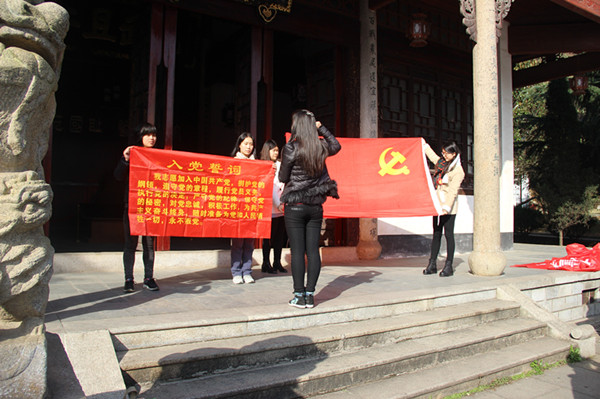 经济与管理系学生党支部此次党员活动的第一部分“祭奠英烈,牢记使命”在岳麓山忠烈祠和七十三军烈士墓处开展。全体党员教师和学生佩戴自制的“抗战胜利花”,以庄严的态度参加了公祭活动。学生党员杜雨晴同学在忠烈祠前诵读了《告慰烈士英灵,圆我百年梦想》祭文,表达了对英烈的祭奠和对民族苦难历史的纪念之心。2014年11月份发展的新党员同学申珊珊带领新党员进行了入党宣誓,老党员也一起重温了誓词。党员宣誓后新发展党员贾雪冰同志作为代表发表了题为“牢记党员使命’的发言。党员同志们都表示,这样的纪念活动让她们更深刻地认识了国家历史,党员宣誓也让她们更加明确了自己的责任。随后,学生党支部组织全体党员参观了忠烈祠和七十三军烈士墓,聆听了七十三军烈士墓志愿讲解者曹湘陵讲解七十三军在长沙会战中的英勇事迹,并由学生党员做代表向烈士陵墓献花。