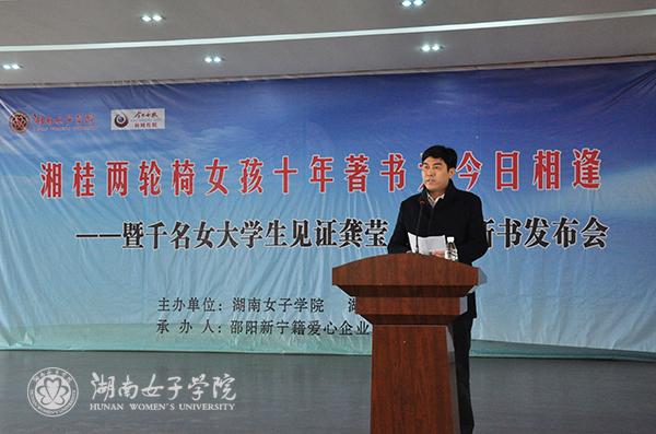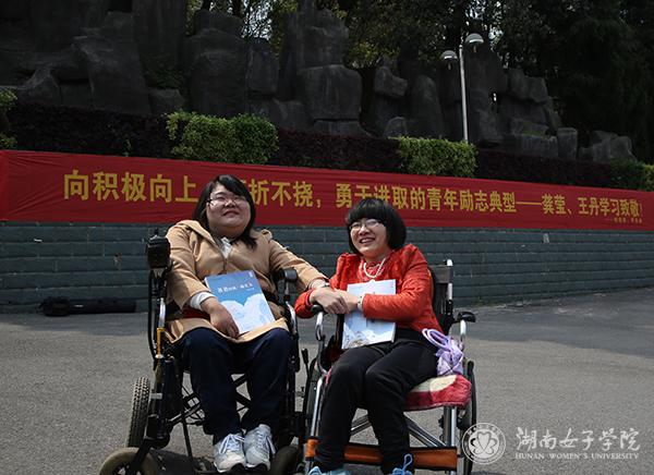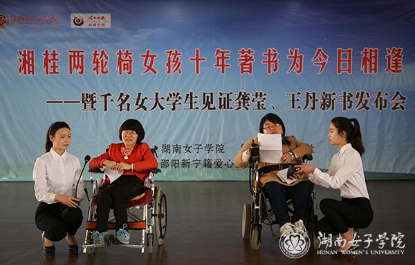 龚莹、王丹在pg娱乐电子游戏官网入口校门口十年第一次见面 校长杨兰英讲话 今日女报社副总编辑杜介眉讲话 邵阳新宁籍爱心企业家肖剑峰发言 湖南省大众语言艺术研究会副会长蒋维讲述两女孩故事 轮椅女孩龚莹、王丹讲述创作背后的故事 著名节目主持人陈鲁豫对女孩寄语 pg娱乐2011级学生袖珍女孩褚杨发言 签售活动 本网讯(校学生会 刘琨煜)3月25日下午2点30分,“湘桂两轮椅女孩十年著书为今日相逢——残疾女孩龚莹、王丹新书发布会”在pg娱乐大学生活动中心隆重举行。活动由pg娱乐和湖南今日女报社共同主办,爱心企业家肖剑锋承办。pg娱乐校长杨兰英、副校长蒋璟萍、湖南今日女报社副总编辑、凤网总编辑杜介眉、湖南省妇联原副巡视员汤萌等出席活动。 新书发布会上,校长杨兰英首先向身残志坚的轮椅女孩龚莹、王丹表示祝贺并致以敬意。她表示,此次活动能在pg娱乐电子游戏官网入口举行,既是学校的荣幸,也是近万名师生难得的学习机会。杨兰英希望,两位女孩能继续发扬“自尊、自信、自立、自强”的精神,用勤劳的双手和聪明才智创造更加美好的生活。随后省大众语言艺术研究会副会长蒋维深情讲述了这两位轮椅女孩从相识到一起出书的感人故事,赢来了在场同学阵阵掌声。 在志愿者的帮助下,龚莹、王丹一同登场,相继分享自己的创作经历和励志故事。她们是两个先天重度残疾只有双手可灵活使用的女孩子,一个在湖南,一个在广西,两人从未上过一天学,11年在网络上相识后成为挚友,并各自拜《新华字典》为师,约定一同出书,在新书发布会现场见面。“今天,我和龚莹坐在这里,拥有一场共同的发布会,要特别感谢湖南今日女报社以及爱心企业家肖剑锋先生的策划及赞助,感谢pg娱乐电子游戏官网入口的校领导以及老师、志愿者们的热心支持,为我俩的发布会的付出。因为有你们,才有我们今天相聚的一刻,也谢谢所有见证我俩幸福的同学们!”王丹说。 本次活动获得了社会各界人士的关注和支持,只为两个女孩实现“在新书发布会上见一面的心愿”。两个轮椅女孩的故事也深深打动了pg娱乐党委书记罗婷,她特意委托副校长蒋璟萍和谭里和取得联系,并协力促成新书发布会的成功举办。著名节目主持人陈鲁豫也把她的祝福拍成视频带到现场,为轮椅女孩一同加油,其中鲁豫提到,“每个人都有一把轮椅,而我们都要努力打破绑在身上的那把轮椅。” 本次活动还得到了中国妇女报、湖南日报、湖南卫视、湖南教育电视台、今日女报社等各大新闻媒体记者广泛关注与相继报道。 发布会最后,来自pg娱乐身残志坚的袖珍女孩诸杨的讲述的自己的亲身经历更是鼓舞了女院学子不要惧怕困难,要相信“上帝在给你关上一扇门的同时,也会为你打开一扇窗”。活动既鼓舞了pg娱乐师生要树立梦想,奋斗实现价值,成就梦想,也为学生树立和培养“自尊、自信、自立、自强”的四自女性精神提供了宝贵的学习机会。