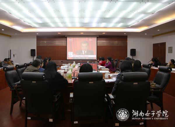 本网讯(党政办 宋兴明 宣传统战部 刘遵仁)4月8日下午,学校在办公楼二楼大会议室召开2016年第一次党委中心组(扩大)学习会议。在校校领导、中层正职和主持部门工作的副职等参加学习会议。校党委书记罗婷主持学习。 思想政治理论课教学部主任付红梅组织学习政府工作报告和全国两会相关文件精神。她以“抓改革谋创新,促发展惠人民”为主题,介绍了两会召开的基本情况、重点解读了政府工作报道的工作要点及两会热词。 大家集中观看了央视新闻解读《政府工作报告》的视频和习近平总书记出席湖南代表团全体会议的视频资料,结合宣传统战部配发的《图解政府工作报告》和《全面小康热点面对面》等学习资料,加深了对两会会议及报告文件的学习。 罗婷发表讲话。她就如何领会贯彻两会精神和政府工作报告提出了三点建议:一是要着眼全局,充分把握两会召开的重大意义,认识学校发展的宏观形势;二是立足实际,深刻领会两会精神,大力推动学校改革发展;三是要狠抓落实,深入学习贯彻好两会精神,营造良好的改革发展舆论氛围。罗婷在讲话中强调,领导干部要审视学校转型发展的“新常态”,树牢五大发展理念,培育学校发展新动力、构建新格局、坚持勤俭办学、实施开放办学战略和推进民生改善工程。她指出,学校发展规划要紧密对接国家区域发展战略和行业发展政策,加强相关学科专业建设,实施学校供给侧改革,着力培养高素质应用型女性人才,推动学校转型发展。罗婷要求大家结合学习贯彻十八大和十八届三中、四中、五中全会精神及“两学一做”学习教育,加强对“两会”精神的学习宣传。要通过学习,进一步更新思想、更新观念,强化创新意识、创新能力,研究国家经济结构调整、产业升级转型、要摸准社会和妇女发展脉搏,谋全局、抓大事,切实做好干部定编定岗、人才队伍建设、学校十三五规划的编制等重点工作,在学科布局、专业设置、人才培养、招生就业等方面深化改革。 罗婷在会上重申了学习态度和学习纪律。她指出,学习将成为领导干部的新常态,绝不能走过场,流于形式;领导干部要深入践行“三严三实”,增强政治意识、大局意识、核心意识、看齐意识,加强作风和能力建设。学校党委将持续推进党风廉政建设,巩固良好学校政治生态环境,为学校的改革发展保驾护航。