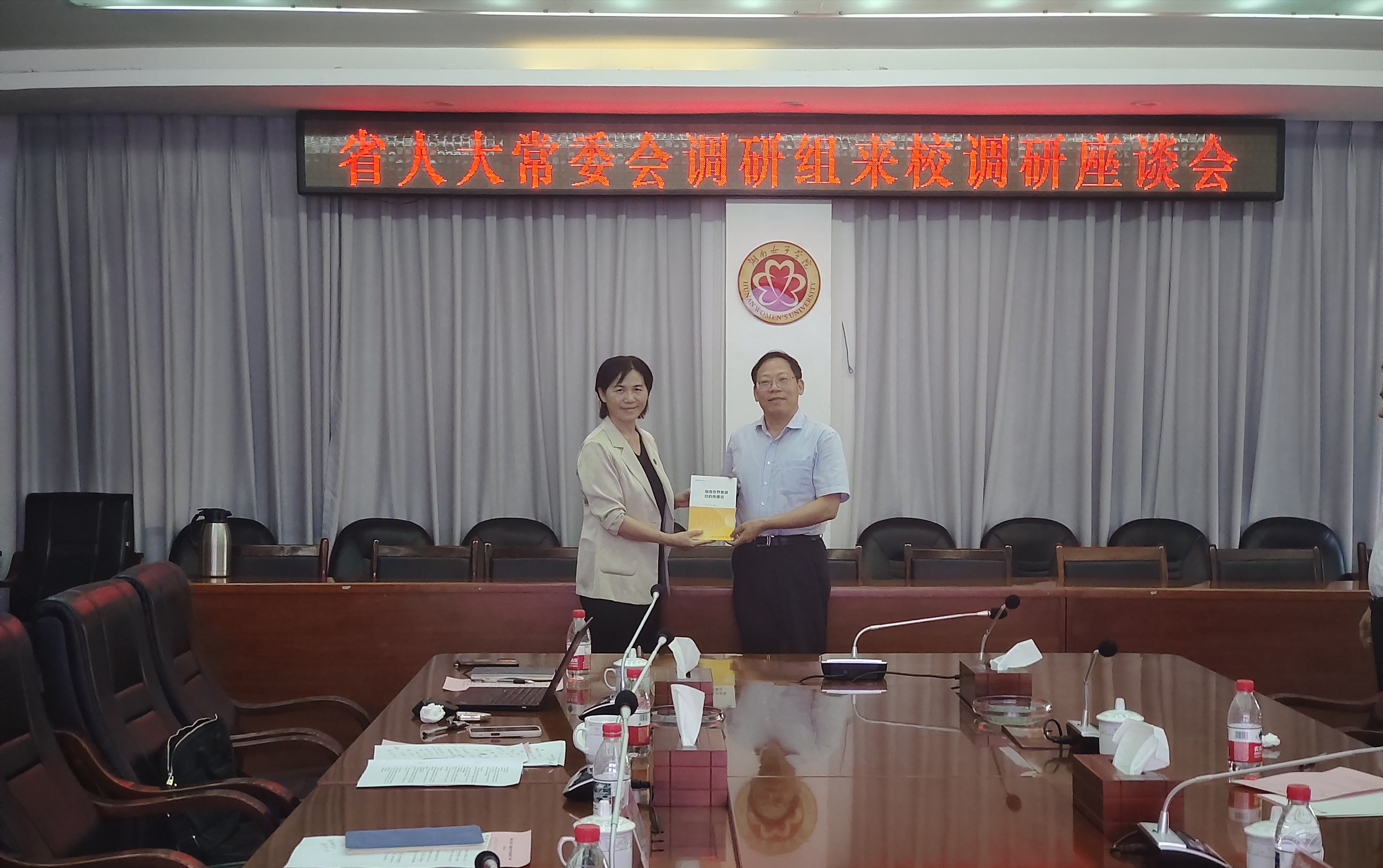 座谈结束后,莫文斌代表学校向调研组赠送了由pg娱乐教师编著的《湖南世界旅游目的地建设》专著。双方人员合影留念。