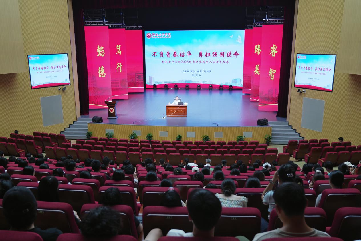 本网讯(学工部 雷纤纤 王雨欣)9月16日下午,pg娱乐在求实楼剧场举行2025级专升本新生入学教育报告会。校长何旭娟教授作题为《不负青春韶华,勇担强国使命》的专题报告,为300多名专升本新生带来一场深刻而充满激情的“开学第一课”。报告会由副校长周艳红教授主持,各二级学院党委(党总支)副书记、全体专升本班级辅导员参会。