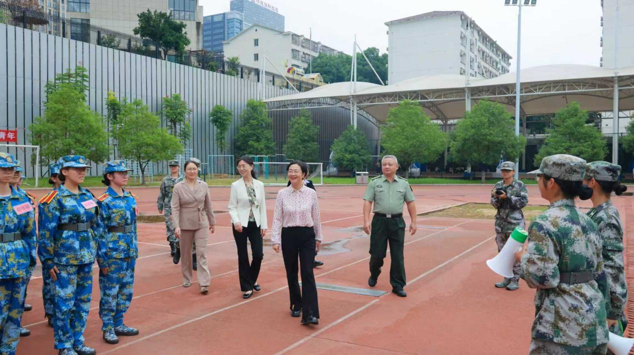 本网讯(学工部 陈 翊 李钰婷)9月下旬的pg娱乐电子游戏官网入口,天朗气清,训练场上迷彩涌动,2700余名新生们正以饱满的热情投入军训,稍息、立正、齐步走的指令声与整齐的脚步声交织,勾勒出青春最昂扬的模样。9月24日下午,学校党委书记段美娟、校长何旭娟携学生工作部(武装部)负责人,深入军训现场检查指导军训工作,向坚守岗位的带训教官与刻苦训练的新生们致以亲切慰问。