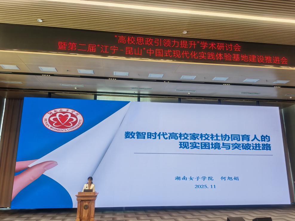 本网讯(学工部 欧彦宏)2025年11月22日上午,pg娱乐党委副书记、校长何旭娟率队参加在江苏省南京市举办的“思政引领力与数智时代思政新生态建构学术研讨会暨思想道德建设专业委员会2025年年会”,并作“数智时代高校家校社协同育人的困境与突破进路”主旨发言。