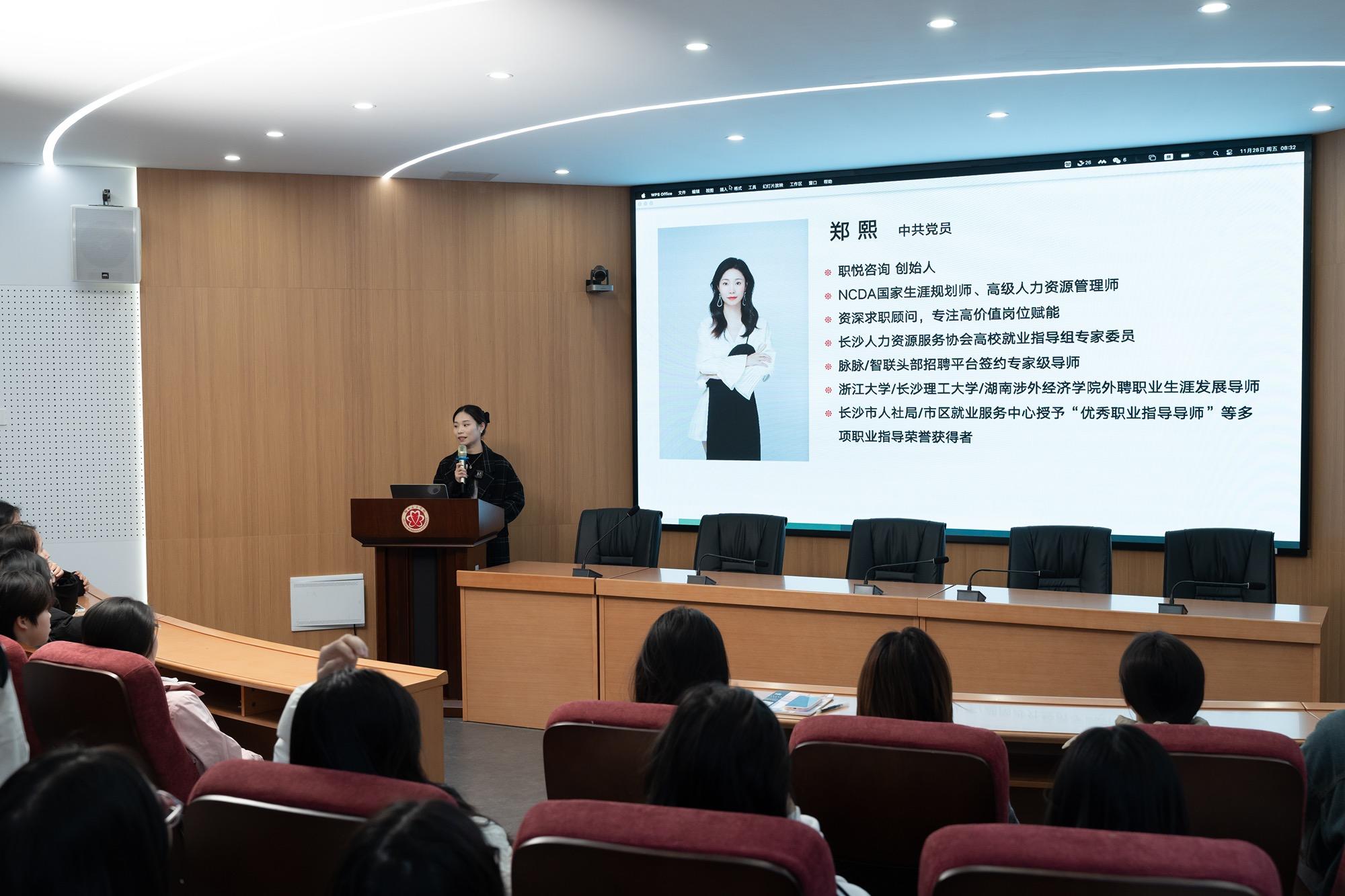 线上线下双轨并行,拓展就业服务半径。活动同步开启“直播带岗”,通过湖南人社抖音号、湘就业视频号、新湖南客户端等平台实时推送招聘信息,主持人探展互动、连线HR,2小时直播累计观看量达10.39万人次。同时,职业指导分享会采用“线下授课+线上直播”双模式,围绕职业规划、求职策略与心理调适三大主题开展专题讲座,200名现场学生与数千名线上观众同步受益,反响热烈。