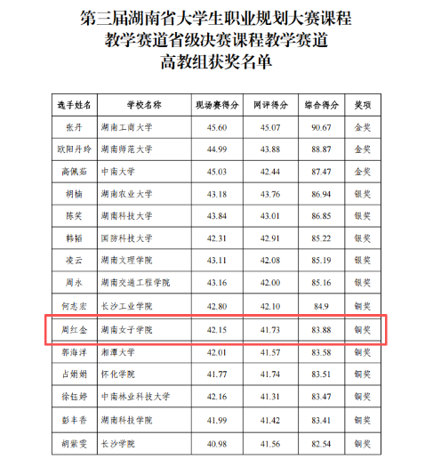 pg娱乐周红金教授团队在第三届湖南省大学生职业规划大赛课程教学赛道中斩获省级铜奖