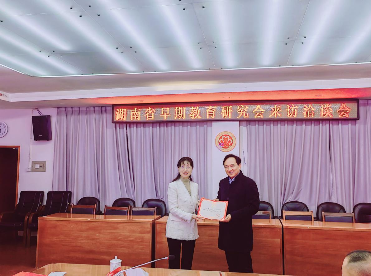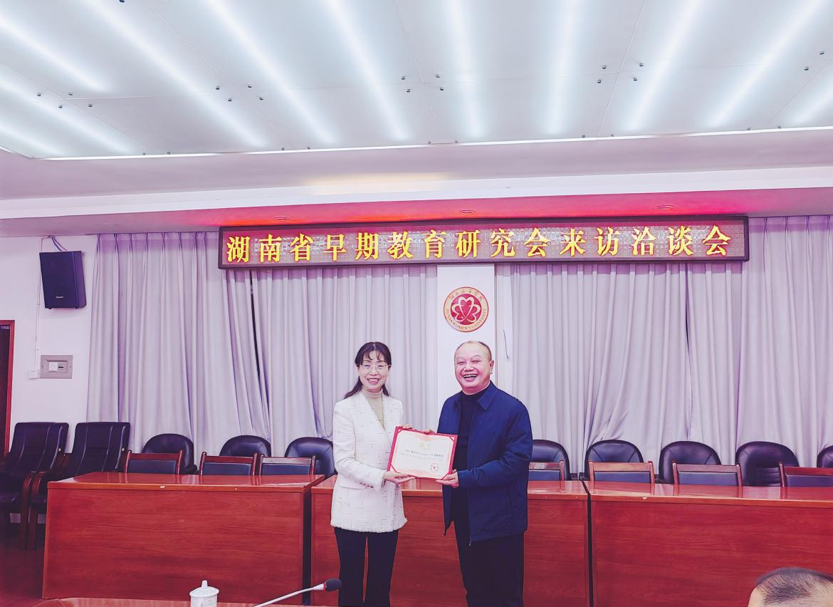 何旭娟校长代表学校对研究会一行的到来表示热烈欢迎。她指出,学校一直高度重视学前教育专业的发展,通过持续增加投入、优化课程、强化实践教学、加强师资队伍建设等一系列措施,扎实提升人才培养质量,致力于为社会培养更多优秀的学前教育专业人才。湖南省早期教育研究会汇聚了行业智慧与资源,是推动区域早教发展的重要力量。她期待双方以此次合作为契机,在人才培养、科学研究与社会服务方面深度融合,实现优势互补,共同为湖南省早教事业的高质量发展注入新动能。