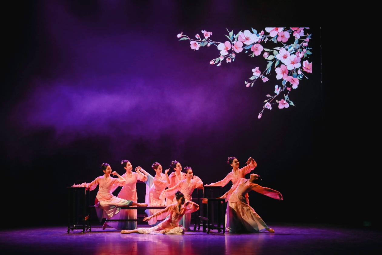 篇章聚焦育人成果与校园生活的丰硕多彩。校工会校友合唱团倾情献唱《我的深情为你守候》,悠扬的歌声表达了校友对母校的深深眷恋与祝福。体育部带来的《活力青春》,由校友与学生同台,以动感十足的啦啦操演展现了女院学子昂扬向上的精神风貌。音乐与舞蹈学院的琵琶重奏《古城弦韵》,师生共同登台,展现中华传统弹拨乐器的独特魅力与艺术风采。