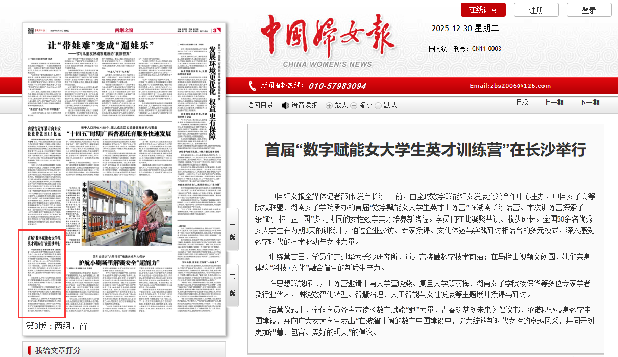 【建校40周年】中国妇女报|首届“数字赋能女大学生英才训练营”在长沙举行