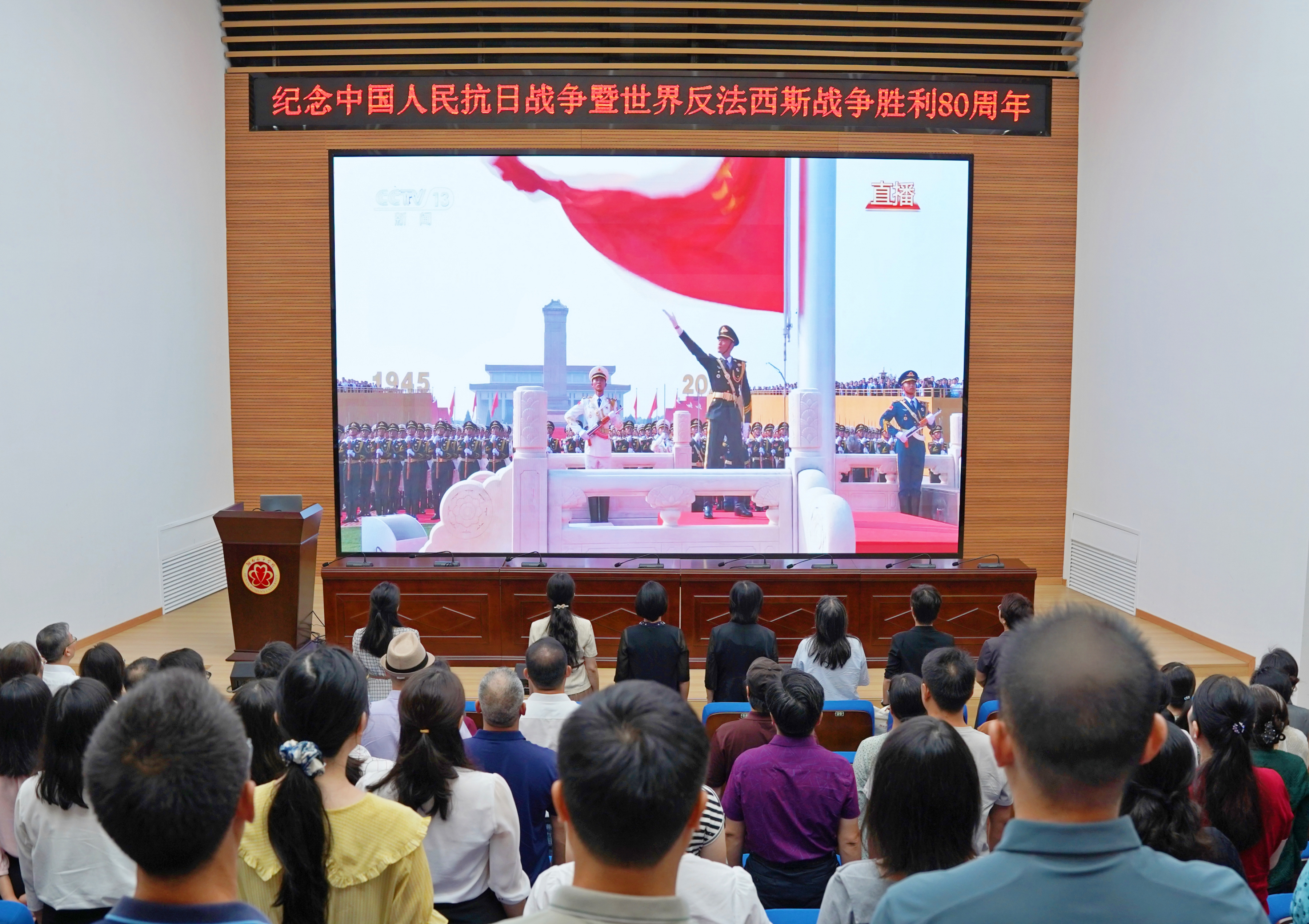 pg娱乐组织集中观看纪念中国人民抗日战争暨世界反法西斯战争胜利80周年大会